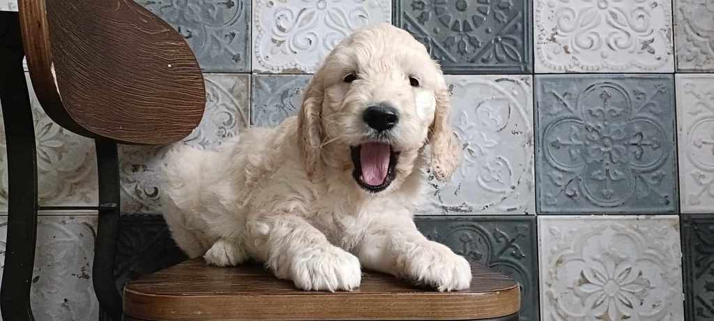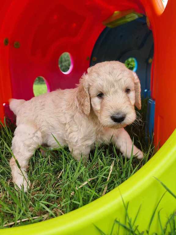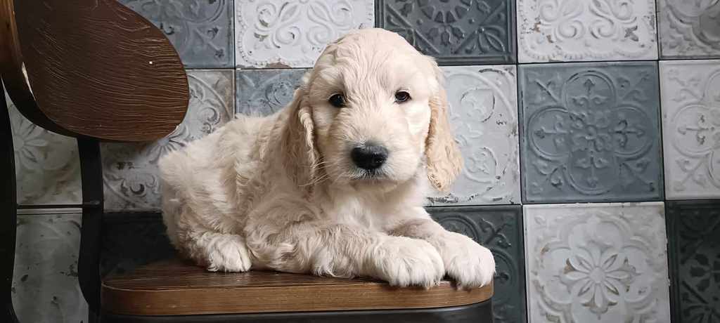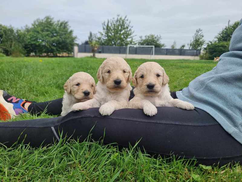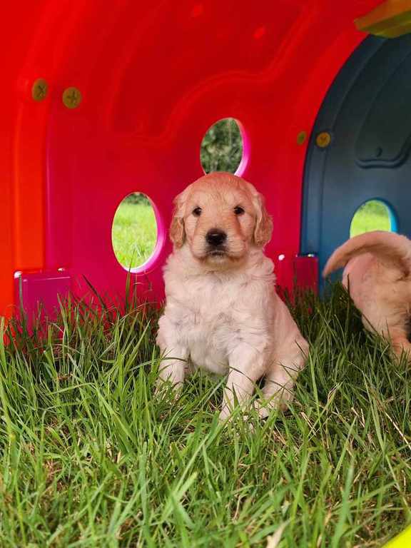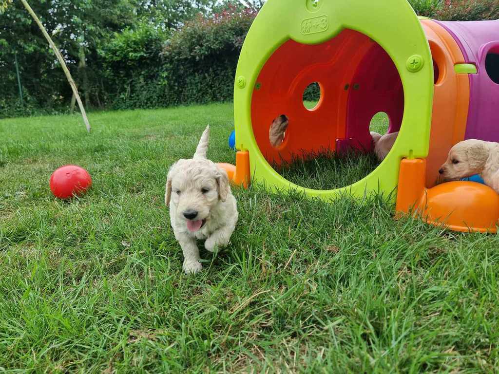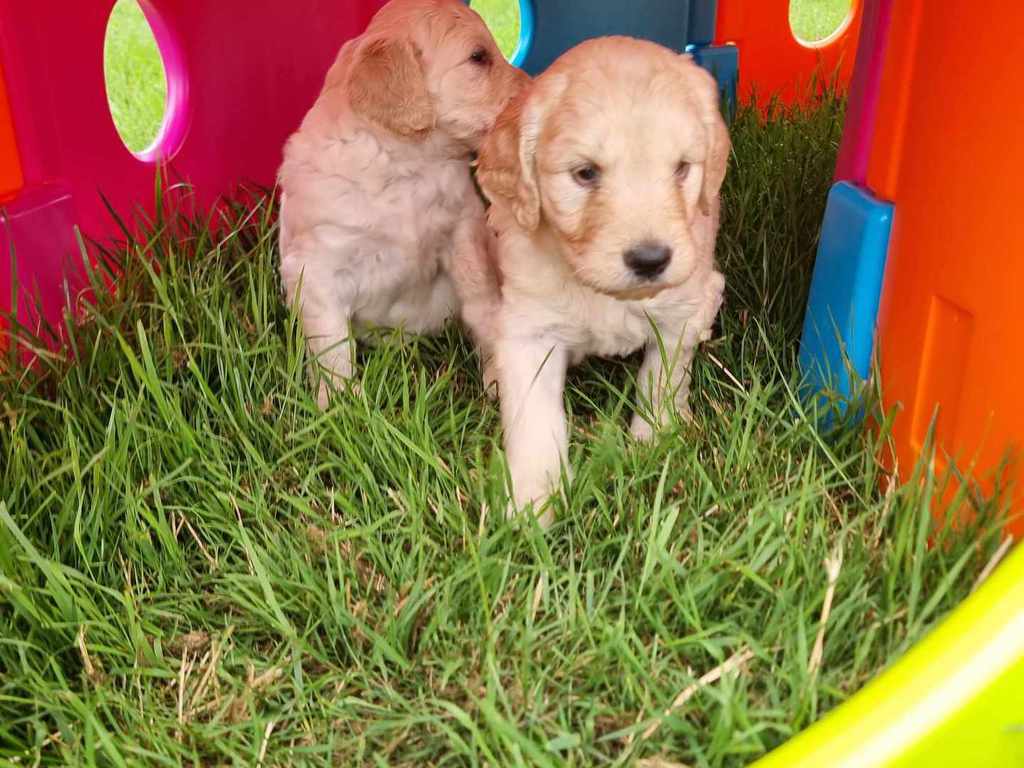 Nos GoldenDoodle sont de taille Standard (environ la taille d'un Golden Retriever, mais en plus fin et plus léger).