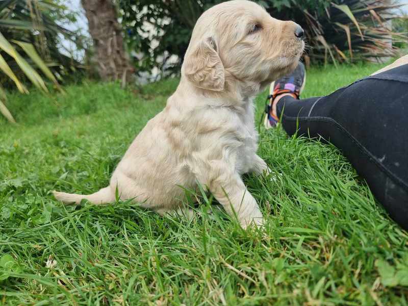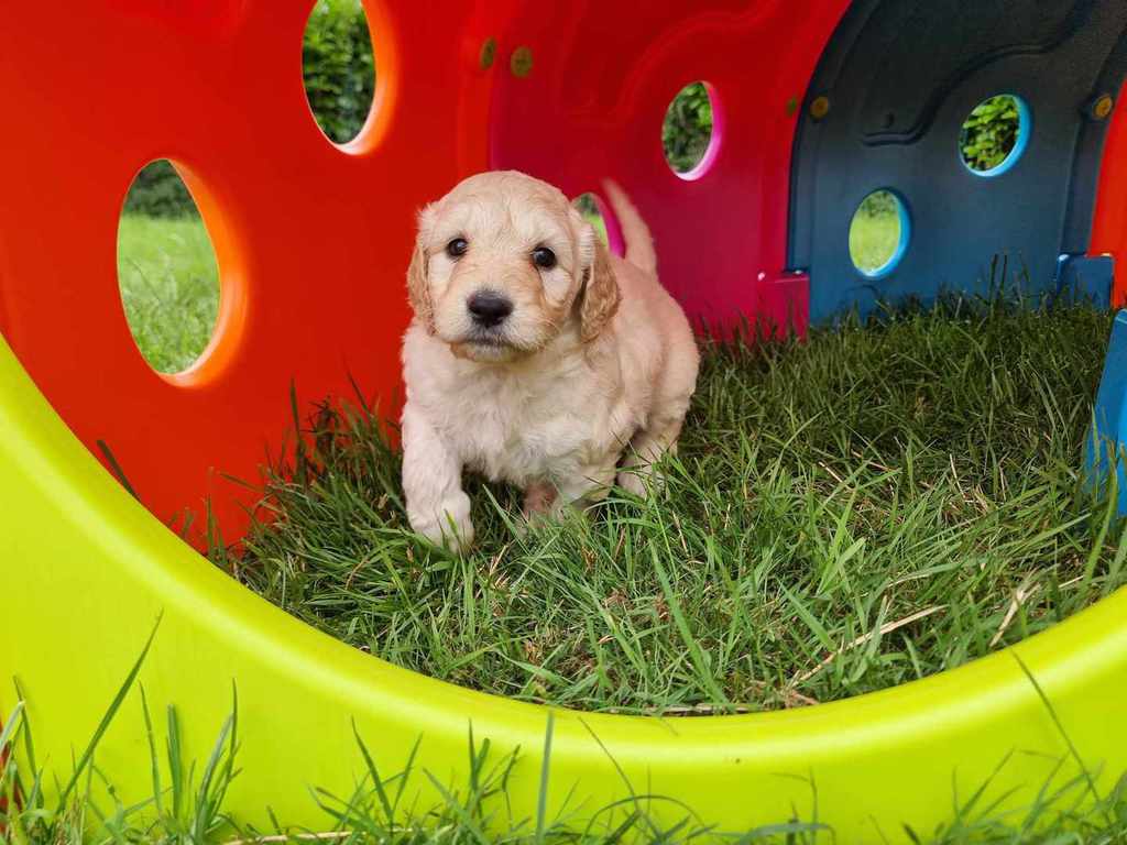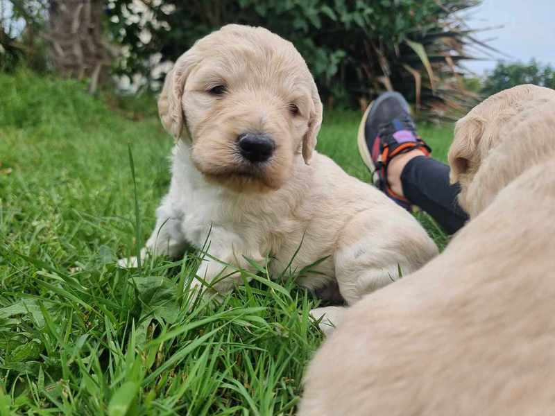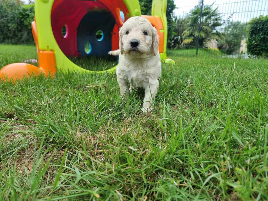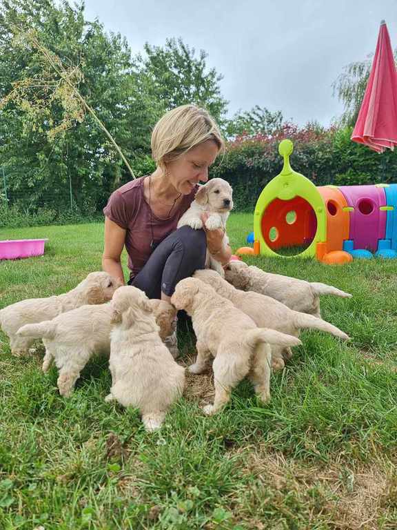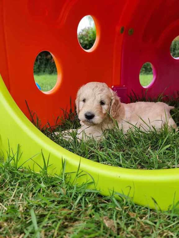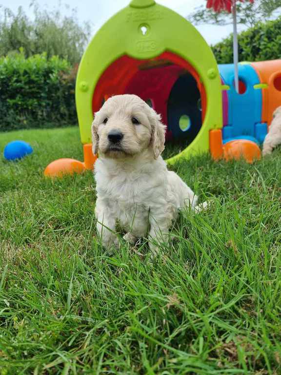 Nos GoldenDoodle sont de taille Standard (environ la taille d'un Golden Retriever, mais en plus fin et plus léger).